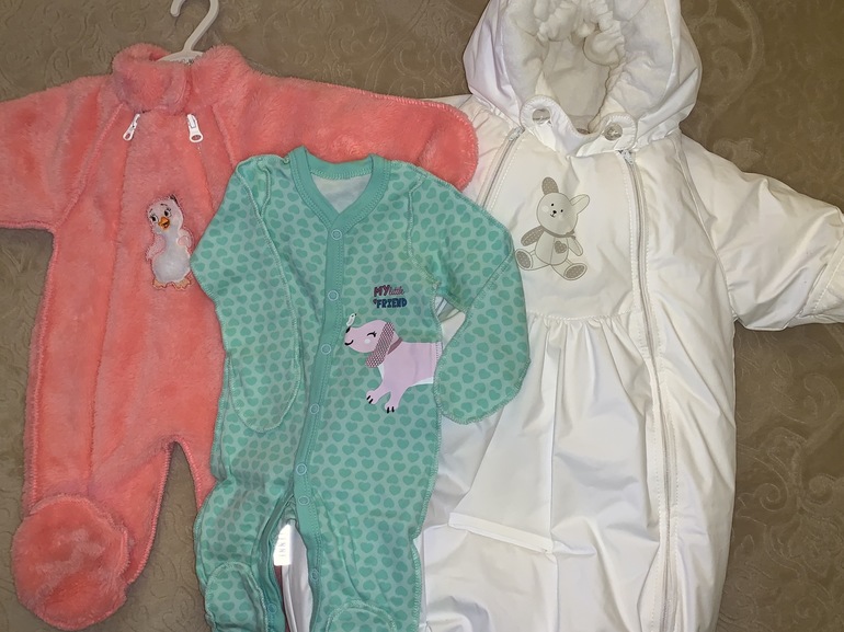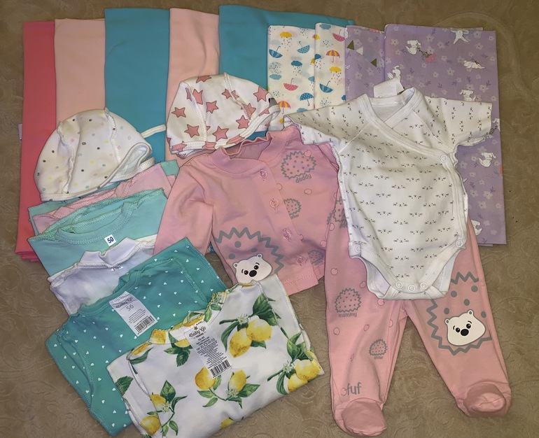 Одежки приготовила по 4-5 комплектов на размер 56 - 68. Ну и прозапас в ЧП закупилась и 68-74.