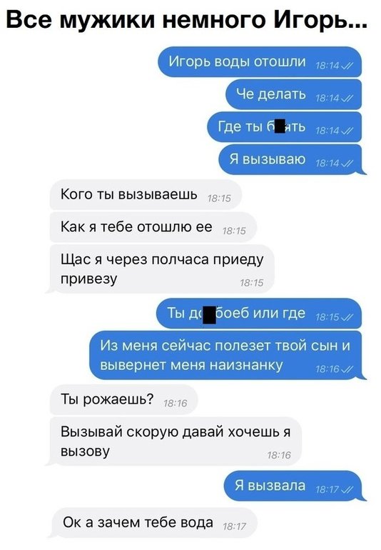 У меня так дядька отличился в свое время 20 лет назад, первые мобильники, фиговая связь. Жили они в общаге с женой, он за рулём работал, звонит ему супруга глубоко беременная и что-то там про воду говорит, а он половину не слышит из-за качества связи вторую, потому что за рулём отвлекается. Да-да, говорит, воды привезу и кладет трубку. Приезжает домой, жены нет, ну он воду в холодильник и сам на общую кухню ужин греть, мало ли, может в магазин пошла. Ну тут соседи ему все популярно объяснили, что жену забрали рожать, а звонила она ему сказать что воды отошли)