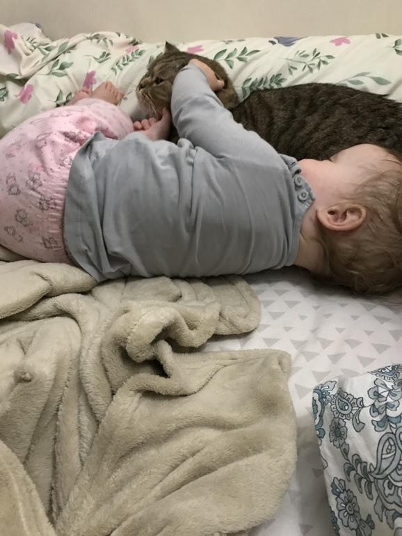 Или забить на все, может обойдется и я паникую... В интернете куча фото, где коты прекрасно ладят с младенцами😂. И мой старый котик раньше отлично ладил со старшими детьми. Но он не был таким оголтелым😂.