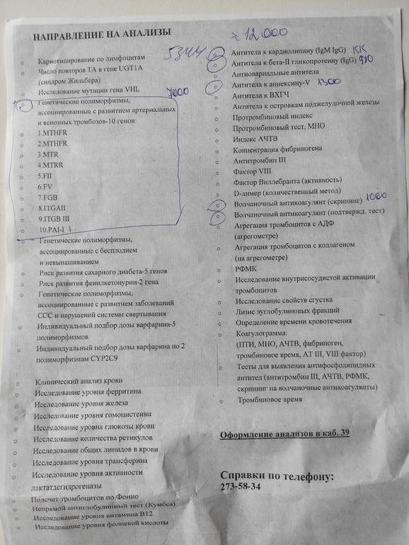 Девушки, нужен ваш опыт и совет. У меня сейчас беременность 8 недель, в анамнезе замершая (причины неизвестны). Ещё весной после чистки мой гинеколог сказала, что с одной замершей идти к гематологу смысла нет. Сейчас же они дали направление к нему, я вчера сходила и осталась в замешательстве. Она мне выдала направление на анализы, по ОМС конечно не делаются они, посоветовала лабораторию МедЛаб. Я на сайте все анализы не нашла, посчитала в Хеликсе, и охренела. общая сумма у меня получилась 12000 примерно 😱 На данный момент у меня нет таких денег чтоб прям вынь да положь...