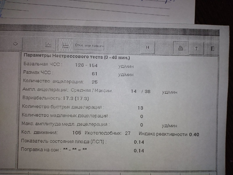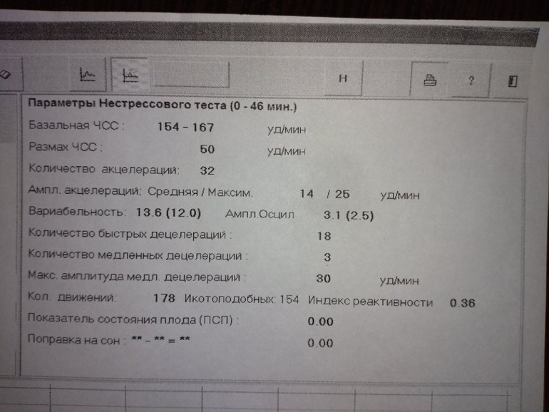 В итоге за 40 мин. аппарат несколько раз ставили на паузу и снова искали сердечко. Малыш танцевал брейкданс. По результатам было решено переделывать КТГв другом положении.