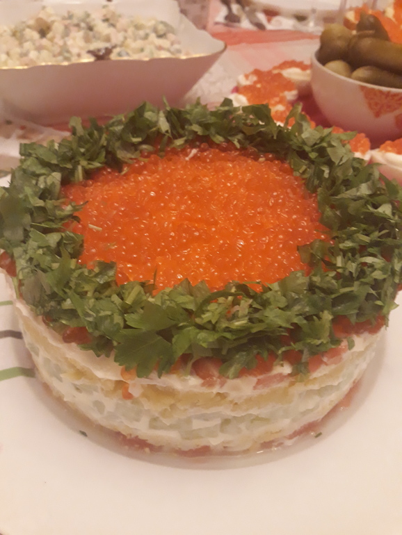 Из салатов буду готовить любимые салаты семьи: Императрицу (с красной икрой и солёной красной рыбой, готовлю только на Н.Г, так как бюджетненько, но салат шикааарный, фото с прошлого Н Г):