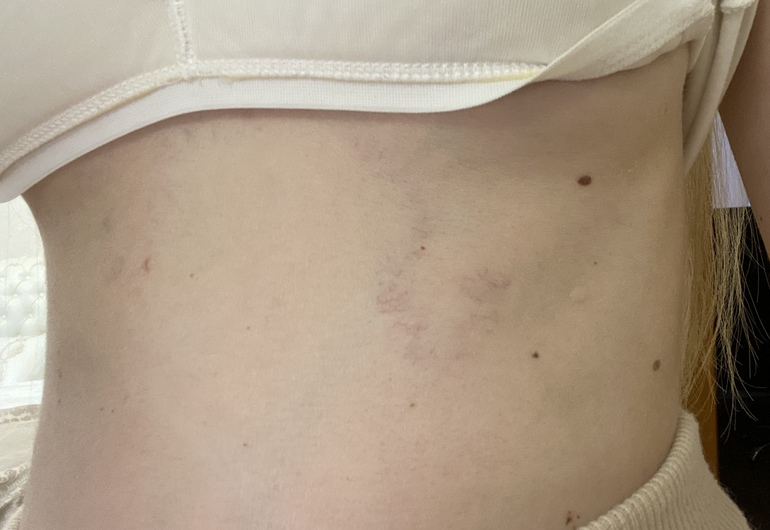 Изменения и болезни во время БДевчонки,вчера этого небыло совсем.Что это за капиляры мелкие и вены выдуло?На груди так же большие вены !очень переживаю.3 день чувствую головокружение,давление при этом хорошее,110/70.Колю клексан.0,2