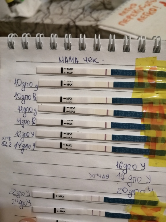 Вот моя динамика тестов, тоже казалось что совсем не ярчают, сдала 2 раза хгч и успокоилась))) Полоски сравнялись только на 6-7 день задержки
