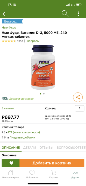 Now с айхерб. По поводу дозировки только уточняйте у врача. Мне врач тоже сказала что достойной замены вигантола в России нет.
