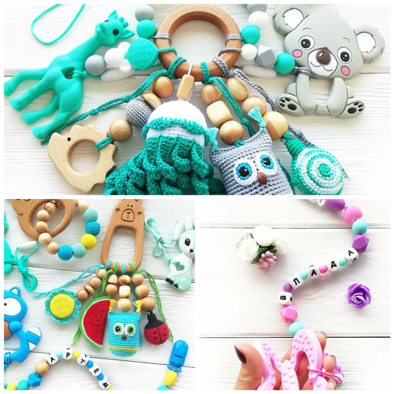 Соскодержатель еще ладно, могу понять. Но а другое для чего? Грызть эти бусинки? Да ни за что. Прорезеватели аптечные самое то.