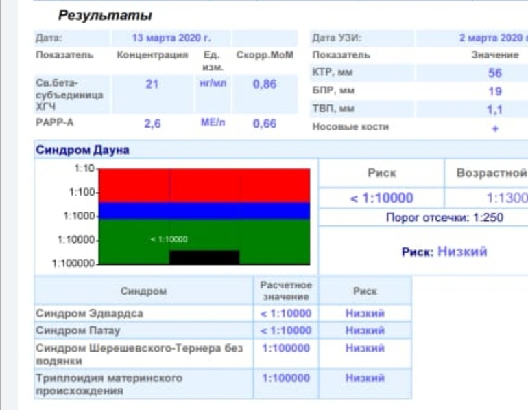 Это результаты скрининга?) я вот жду и волнуюсь ппц. По узи сказали все супер, ждем кровь. По папиной линии не известно кто дедушка и так далее. Мало ли какие болезни