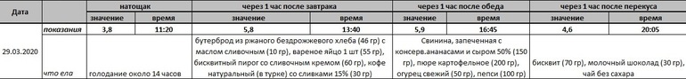 Но, тем не менее, почитав советы и ознакомившись с опытом девочек здесь, я всё-таки решила со своим странным ГТТ повести недельку пищевой дневник при обычном режиме питания, измеряя сахар натощак + через 1 час после каждого приёма пищи.