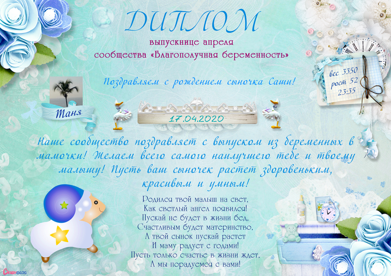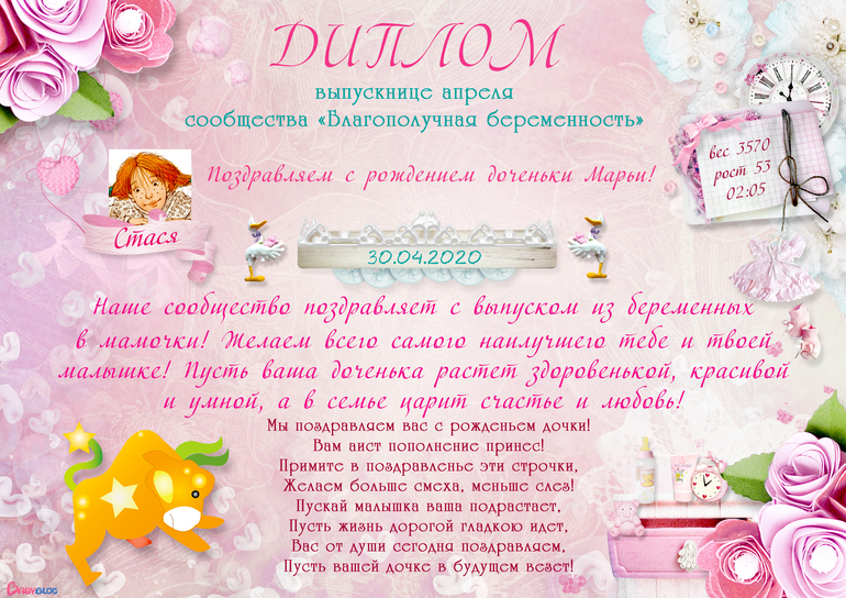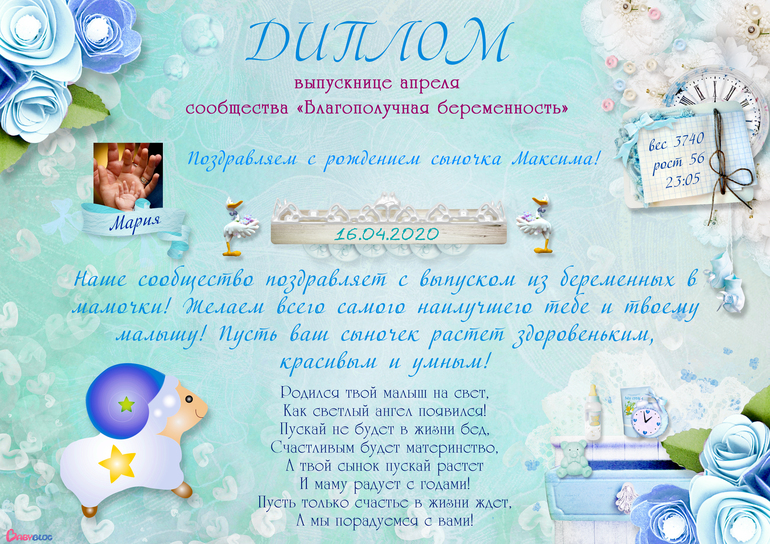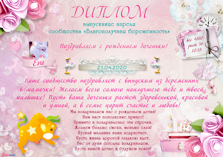 А для выдачи диплома укажите в комментарии имя, вес и рост, время и дату рождения малыша