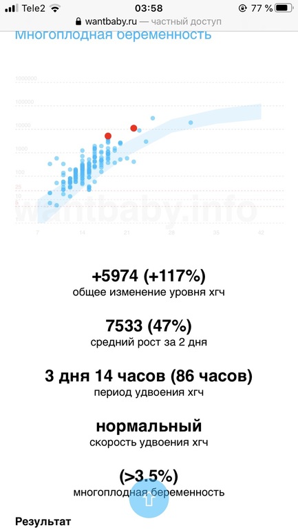 Сдайте ещё раз через 48 часов примерно. Если удвоение предыдущего результата-то двойня у вас!