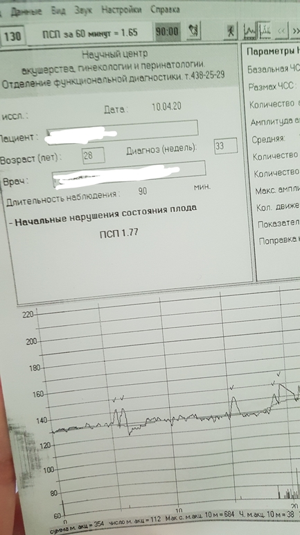 Мне предложили на выбор- сидя или лёжа. Я сидя делала, первый раз в жизни. Повесили на меня датчики, дали в руку кнопку. И все ушли, я одна осталась. Сижу, начались шевеления, нажимаю кнопку. На экране значения начали расти- 130...140...150...160 при 180 лампочки прибора загорелись красным светом, а на 190 заработала сигнализация. Меня саму чуть инфаркт не хватил! Думаю, кричать что ли врачам, чтобы срочно пришли, или датчики самой снимать и бежать) потом малыш успокоился, все нормализовалось до 130. В общем за 15 минут история повторялась 4 раза. Я за процедуру чуть не поседела. Потом пришла врач, я ей рассказала. А потом на распечатке по графику посмотрела, там максимально 160 с копейками. Ничего плохого врачи не сказали, только что ребёнок активный, ну или что голодный) непонятно, почему так психовал компьютер