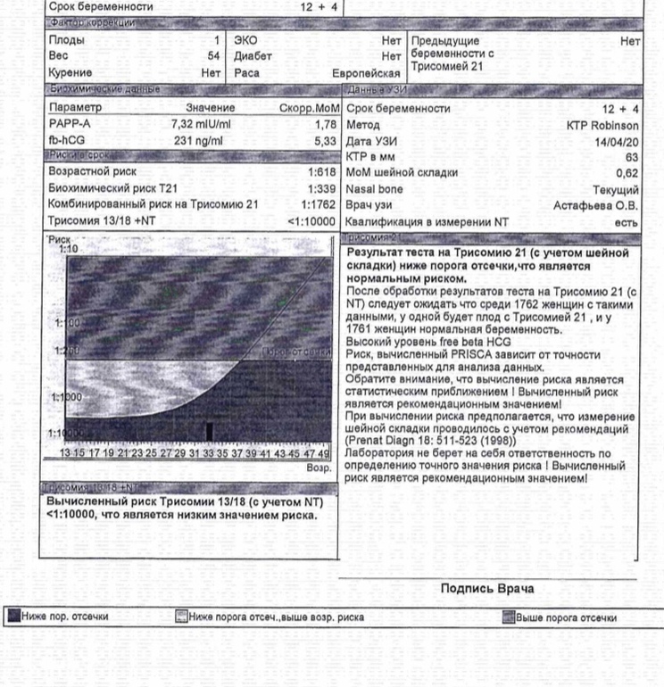 У меня сейчас тоже первый скриниг не очень ((( по узи все хорошо, а вот кровь - повышен хгч 3,054. Папп в норме. Что у вас в итоге? Делали второй скрининг?
