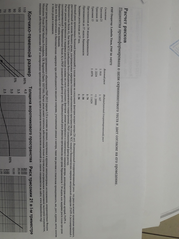 Очень странный скрининг.в смысле само заключение. У меня по другому выглядело. Там писали мои показатели и показатели порога моего возраста. А так вроде все хорошо у вас