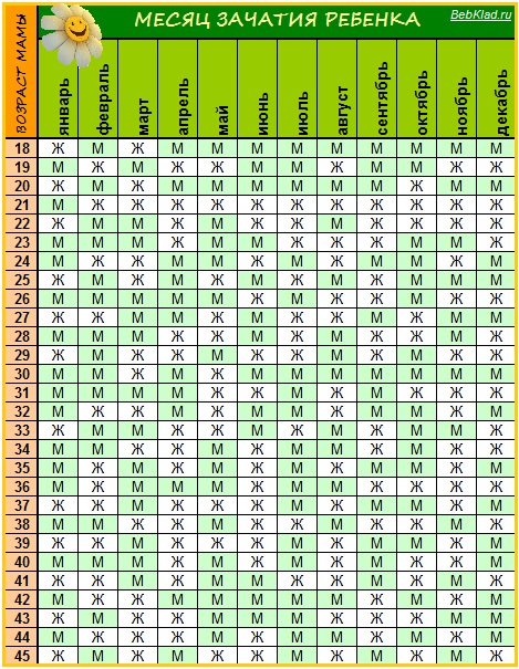 Пол малышаДевочки, впервые увидела таблицу, по которой у меня и в моей семье все сошлось. Ради любопытства, у кого уже есть детки и кто ждет и знает кого, гляньте, а))) всерьез не принимаю эти все штуки...