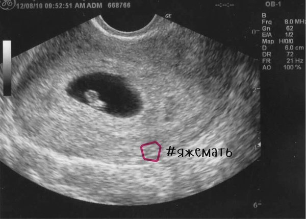 Возьму для примера фото из интернета. Посмотрите каким размером плодное яйцо и в соотношении с ним размер эмбриона- плодное яйцо в разЫ больше.
