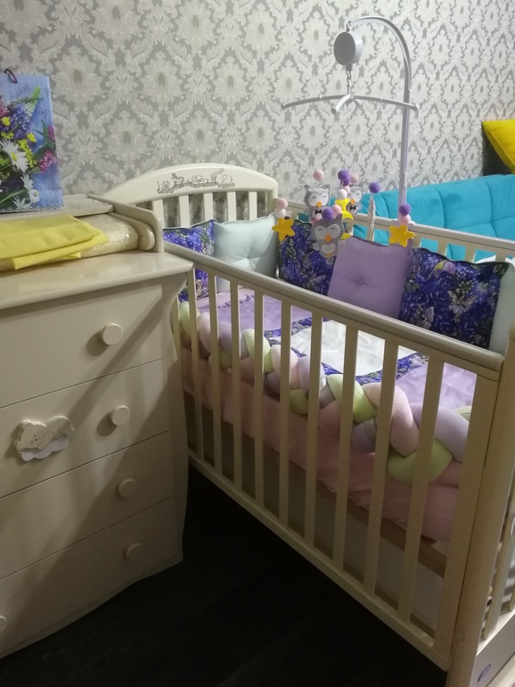Для истории: что у нас получилось с кроваткой, бортиками и подобрала комодик в цвет кроватки.