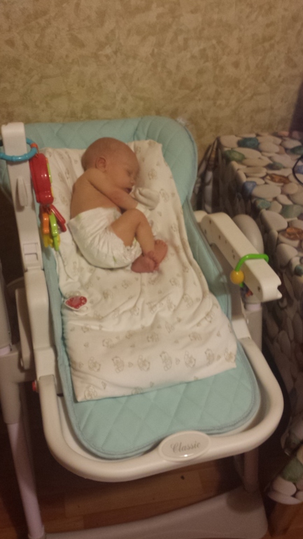 У меня стульчик на кухне почти всегда стоял, я его не перемещала почти. В комнатах другие места для малыша были (кровать наша, колыбель и тд). А на кухне положили и можно было спокойно кушать и готовить. Даже спал там несколько раз)))