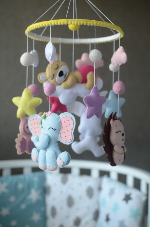 А мне ещё кажется, что игрушки должны быть направлены лицом вниз, то есть что бы ребенок видел полноценную картинку. А то так получается, что красиво, но ребенок видит не понятно что снизу. Ну это чисто мое мнение))
