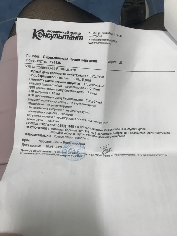 Судя по УЗИ беременность замерла ещё на сроке 7-8 недель.