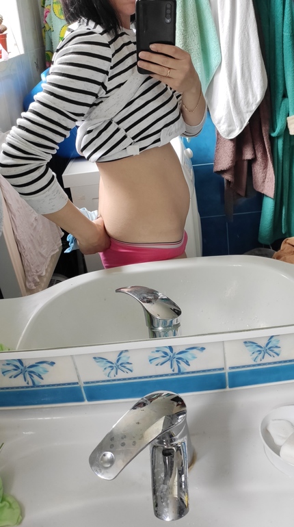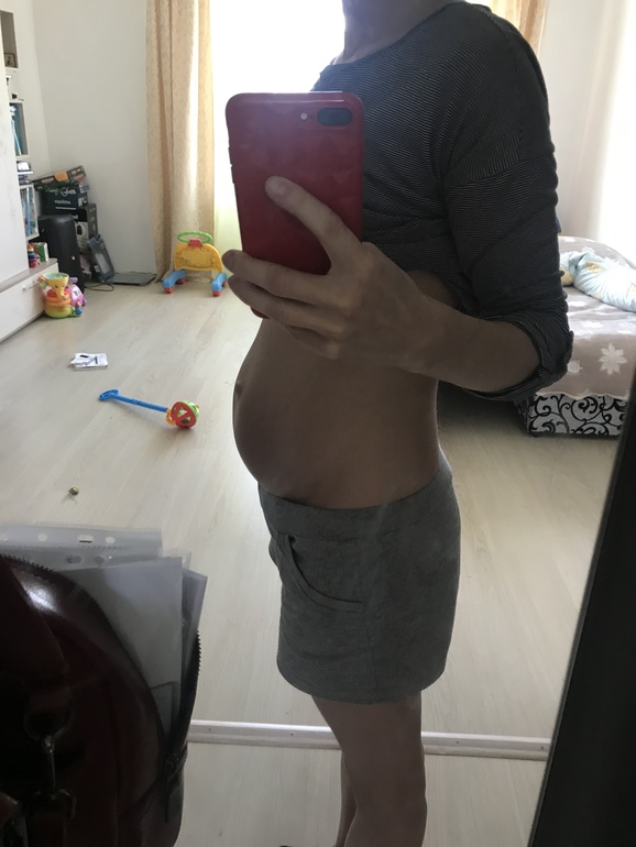 У мен его практически нет, особенно утром,так это 3-я беременность 😂 в первую и вторую беременность ближе к 20 неделям появился и то можно было спрятать под одеждой