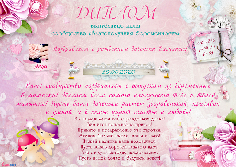 А для выдачи диплома укажите в комментарии имя, вес и рост, время и дату рождения малыша