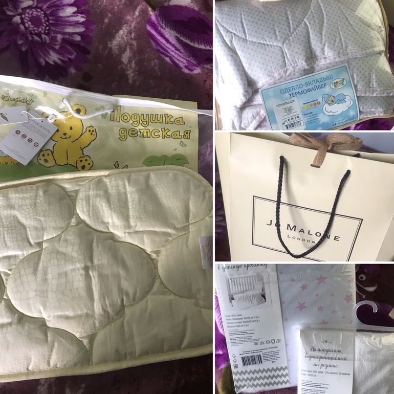 Тоненькая подушечка, одеяло, непромокаемый наматрасник, постельное бельё (простынь на резинке, наволочка, пододеяльник).