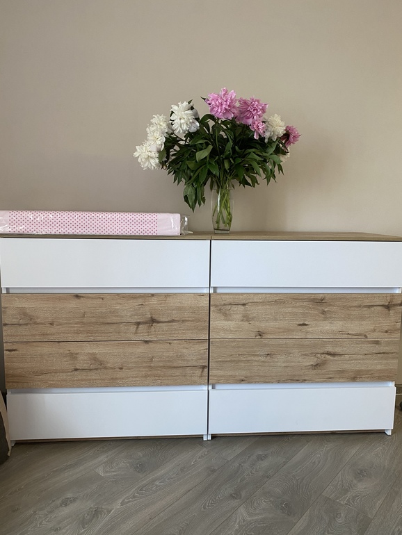 Ну и комоды купили) хотела с икеа, на не понятно когда границы откроют, да и ждать потом, а они мне нужны сейчас) один для меня мало, так как вещи младшей негде хранить, было решено купить два и соединить в один, не плохо вышло) ну и отдельно купили пеленальную доску))