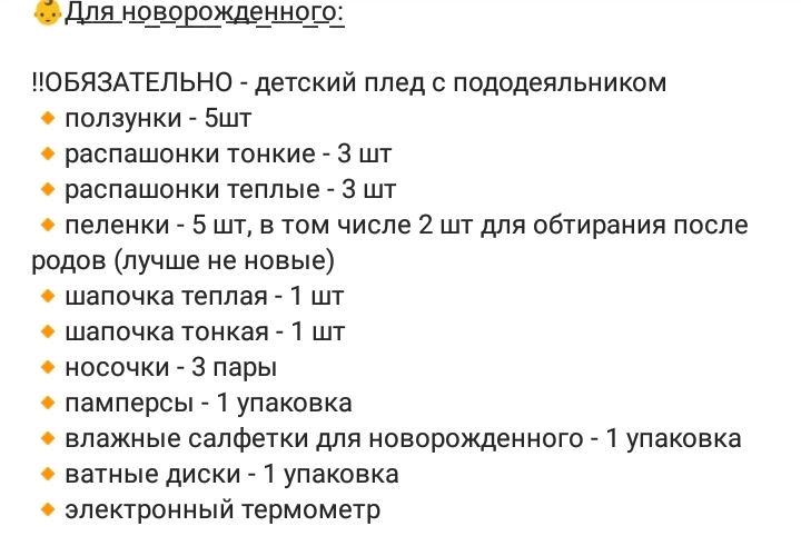 Узнайте сначала в роддоме, где планируете рожать, есть ли у них свои требования/списки. В некоторых роддомах просто ничего своего нельзя.