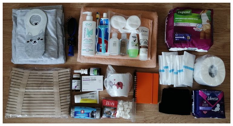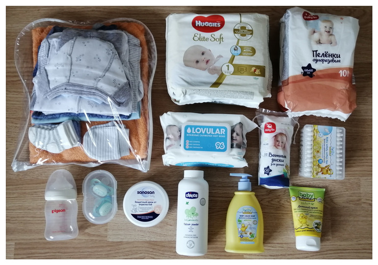 Берите больше влажных салфеток для малыша. Меконий не отмывается, я салфетками оттирала. Понравились Mepsi, они реально очень влажные. Послеродовые прокладки понравились Canpol babies. Они кау простыня, но не мешают, не протекают, ничего не преет. Дома пользовалась Пелигрин , когда выделения меньше стали. Обычные ночные не понравились после родов. Все преет. Их я стала использовать недели через 3 после родов. Еще пригодились одноразовые накладки на унитаз. Кстати, ещё лайфхак. Если будет геморой или швы после эпизио, когда нельзя сидеть на стуле, то очень пригодилась резиновая подушка для геморроя. Такой надувной бублик)) цена вопроса рублей 200 в аптеке. Но очень спасало - можно было нормально есть сидя))