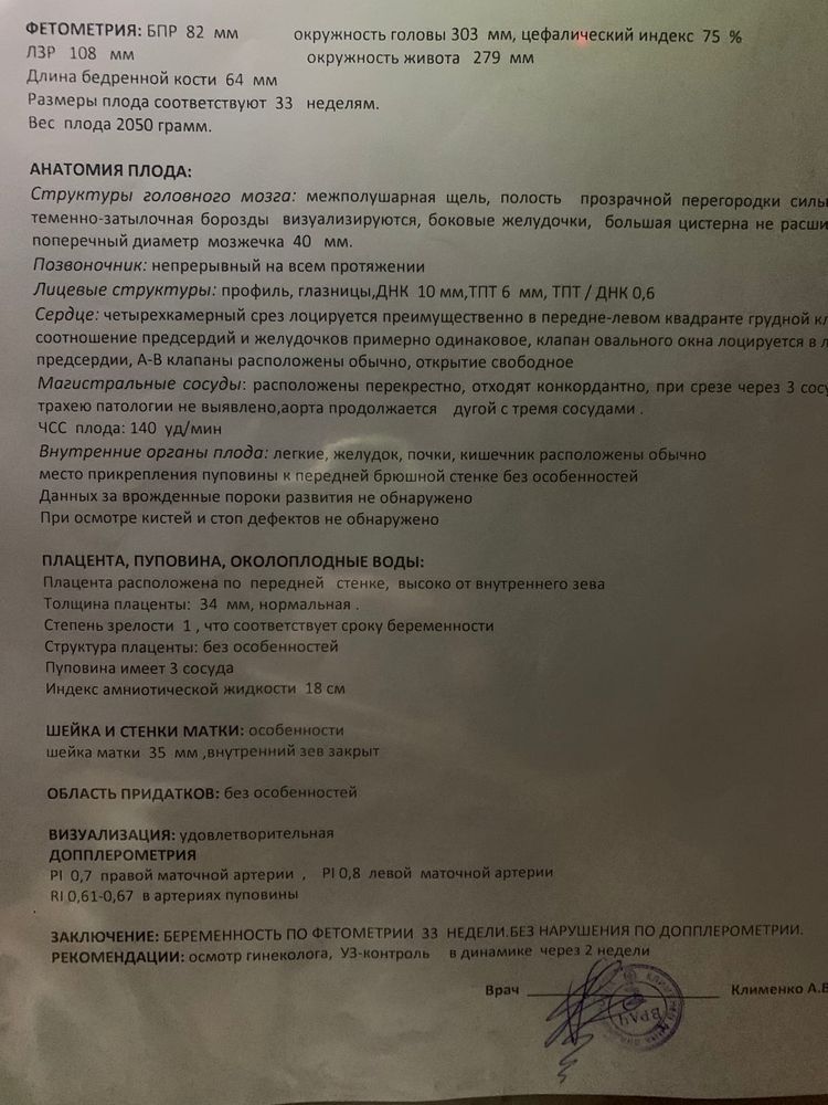 Только вот по фетометрии беременность на 33 недели. И вес ребенка 2050 кг всего лишь((( сказали повторить узи через 2 недели.