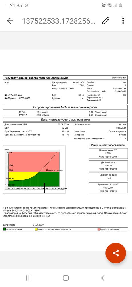 Анализы, скринингиЗдравствуйте! Кто понимает, помогите пожалуйста разобраться. Ребеночка не планировали, так пооучилось. Очень переживаю из за возраста. Мне 39 лет