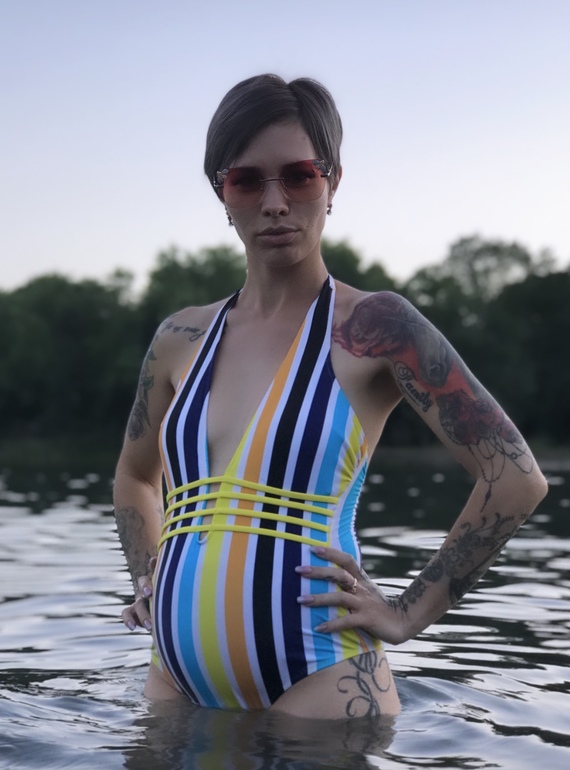 А вот такой пузень уже в купальнике, плотно покушала конечно и надулся изрядно 🤪. Вечером вчера ездили купаться, потому как днём нереально даже из дома выйти 🥵