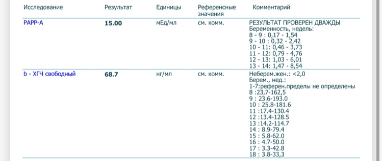 Анализы, скринингиИ я ничего не поняла, ничего не написали и мне как то тревожно-нормальные ли то показатели и почему во втором варианте, где таблица -срок указан 13+2, когда у меня 12+7