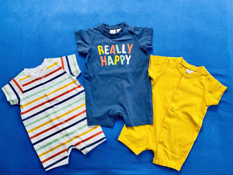 Эти 3 "шорто-боди", наверное, не особо практичны, но коль скоро ребенок ожидается летний (конец июля, начало августа), решила иметь пару легких и ярких вещичек к тем нежно-пастельным и стандартным наборам, которые есть... На крайняк - как альтернатива боди и для разнобразия.)