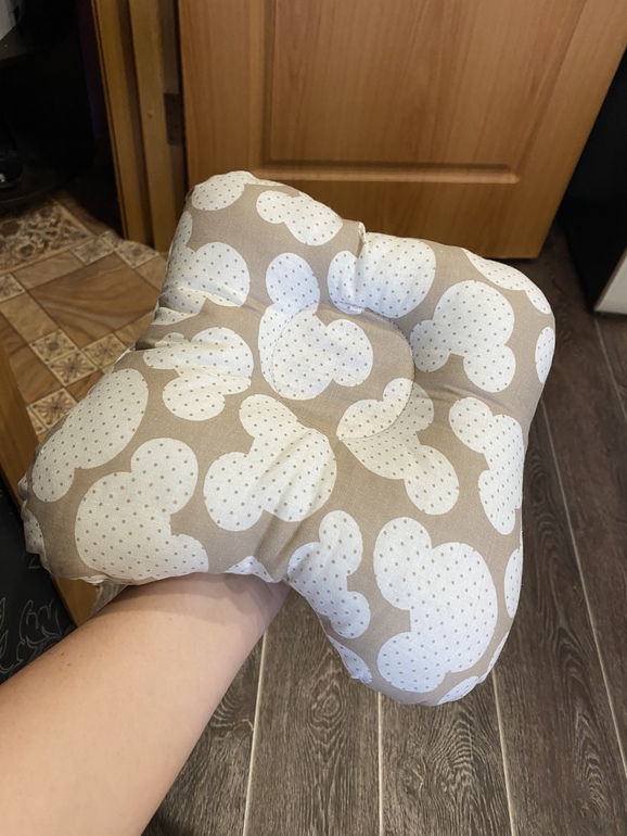 Новорожденным нельзя спать на подушках, только на ровной поверхности. А эту подушечку используют для поддержки во время ГВ, сзади что-то типа манжета крепления на вашу руку должно быть.