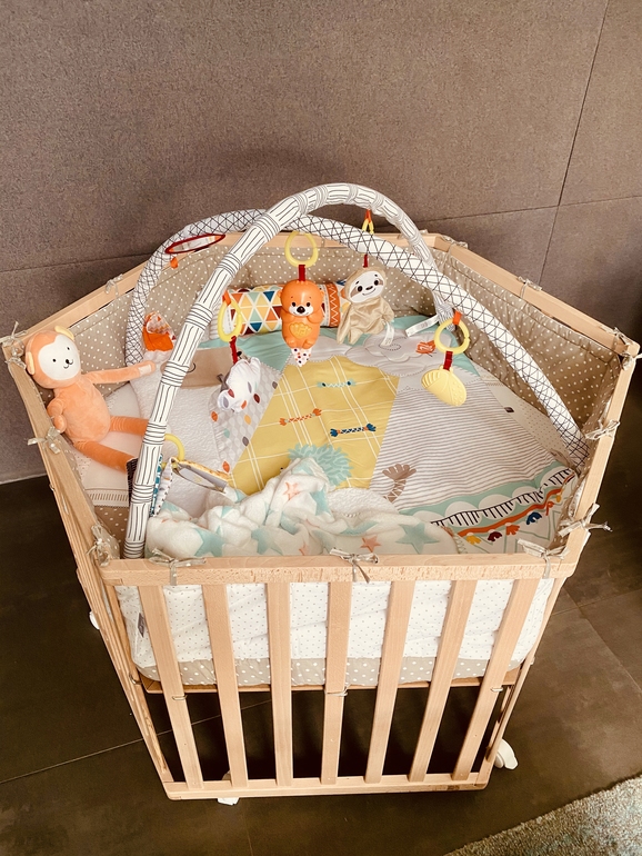 4. Манежик и развивающий коврик в нем (там же одеяльце и игрушка):
