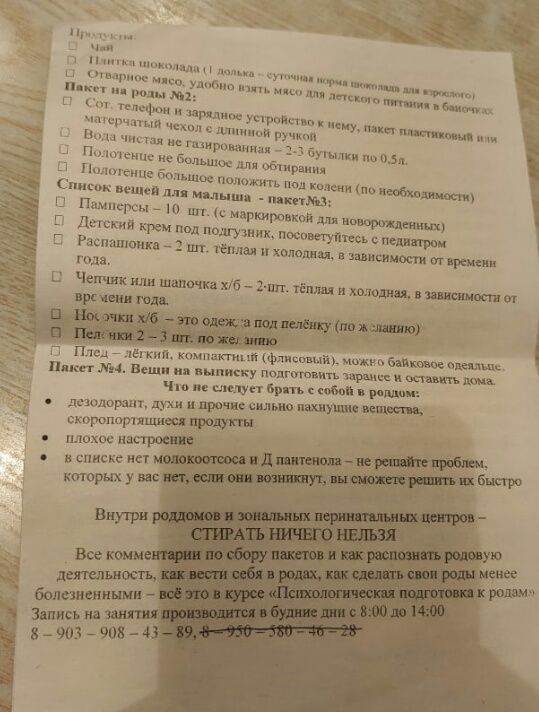 У меня примерно вот такой список, на прошлые роды брала это всё. В этот раз положила тоже самое.