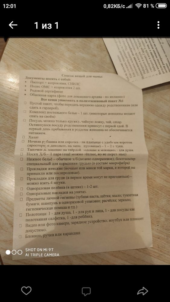 Ребенку комбезы на кнопочках, пеленки чтоб накрыть или запеленать, пеленки одноразовые очень пригодились, подмывала мылом (им же стирала если что). Себе не забыть зеркало - перед выпиской ходили брали у меня, все позабывали дома 😁 Ещё кружка-термос пригодилась 😁