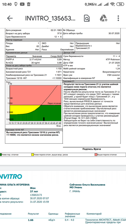 На УЗИ была в 12+2 и плод по УЗИ тоже на 12+2. Поэтому меня смутили сроки на листке с анализом 🤔