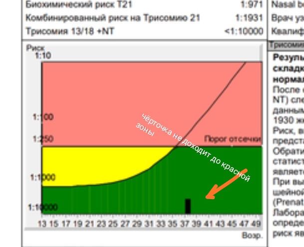 Анализы, скринингиИтак, по возрасту 1:150. А внизу ещё значения. На какое смотреть, чтобы душа была спокойна? 🤔😅 (над графиком)