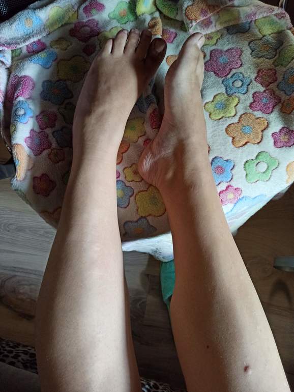 Это жуткие отеки на ногах под конец. Сбоку впадина от ручки кресла)