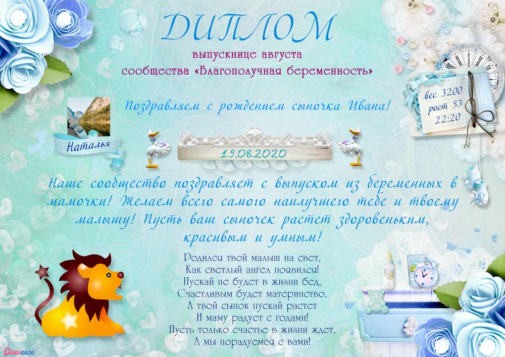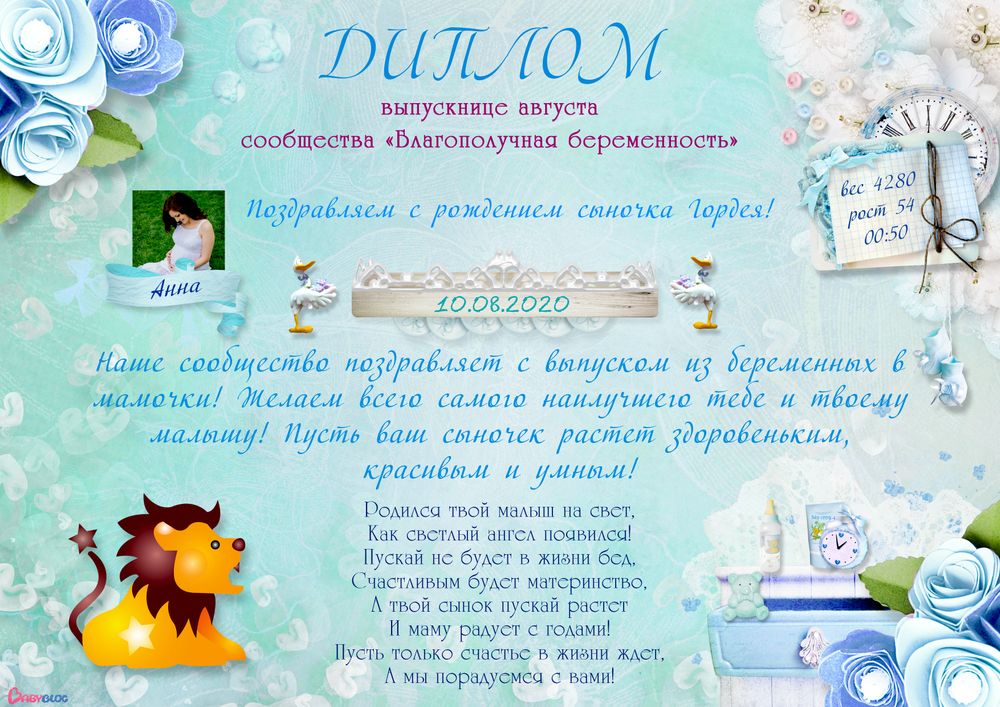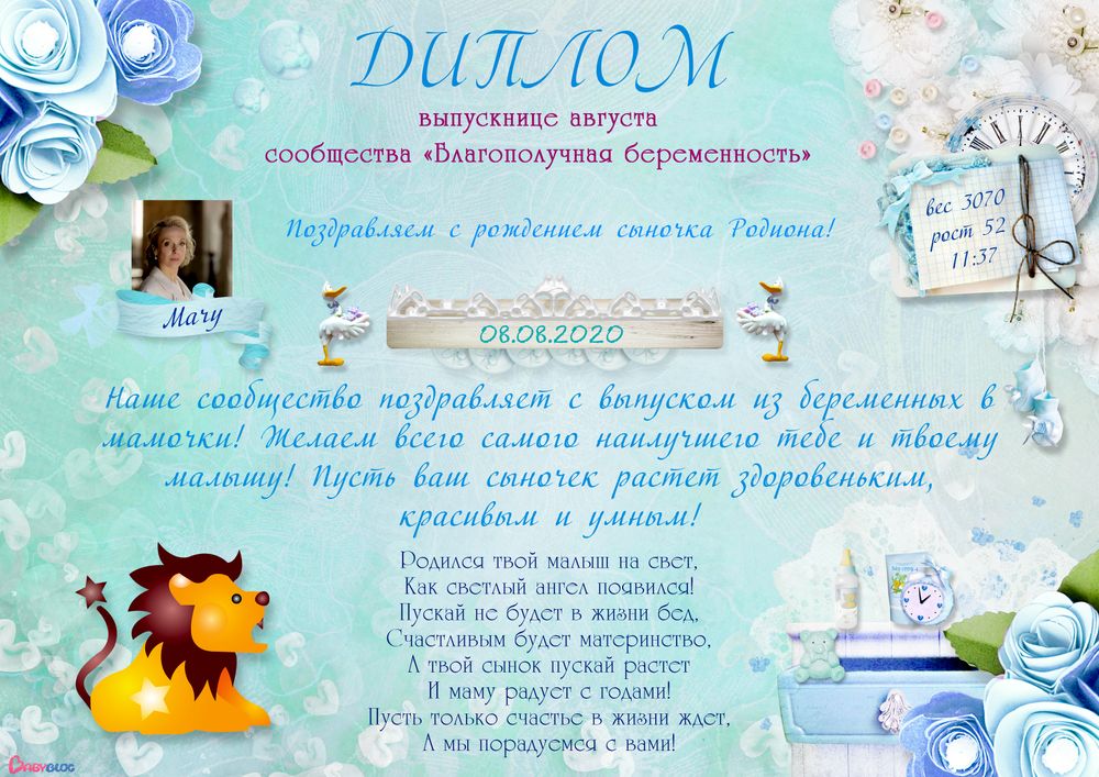Ссылка кстати не активна((Можно нам тоже диплом) Родились 21.07.2020, в 13.14, 3950/56 см,назвали Михаилом)
