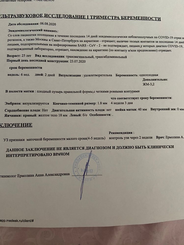 УЗИ, КТГ, доплерПоследние месячные 23.06. Овуляция, как мне кажется, 8 июля, максимум на пару дней задержалась, на 10 дпо заполосатились тесты. 11 дпо-хгч 17,98. 15 дпо-хгч 124,22. 23 дпо-хгч 2185,81. Тоесть с самого начала хгч отстаёт, но с нормальным приростом. Позавчера, на 29 дпо и срок по месячным 6+3 я была на узи, эмбрион нашли, заметили маленькую визуальную пульсацию(с трудом заметили). Но эмбрион всего 1,8 мм, узист сказала чтобы я раньше времени не нервничала, и что может он заблуждал и позднее прикрепился, но тесты на 10 дпо уже с полоской, и как я могу не переживать когда полтора года назад уже была замершая, но срок тогда был крошечный, хгч больше 500 не поднялся. Эмбриона не было. Назначила мне контроль узи через 2 недели, как их прожить я не знаю, думаю может курантил начать пить на всякий случай. Посмотрите узи, и подскажите, может у кого-то тоже так начиналось и все хорошо закончилось?