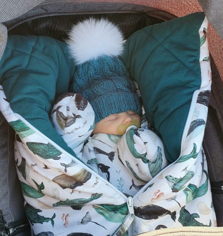 К, потому что дочь была 2600 и 51 см, голова 35, в этом она бы утонула, и плюс было холодно, поэтому сверху был конверт. В итоге мы выписались в боди 50 размера серого цвета и такой же серой шапе. Плюс конверт.
