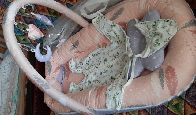 Второе SweetDreams - матрасик более мягкий, не ортопедический, но борта тугие. Есть подушечка, дуга с игрушками. Размер значительно больше, чем у первого. Тоже шкурка полностью снимается.