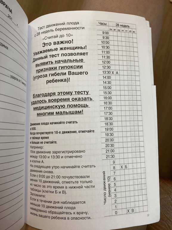 Как мне объяснили отмечаем ✓ только 10 шевеления. С 9-21, когда начинает шевелиться, ждёте пока не перестанет потом проходит ~30 мин - это считается за первое шевеление, потом также 2-е, 3-е и.д. на 10 отмечаете в журнале в котором часу именно произошло 10-е🧐🤪как то так