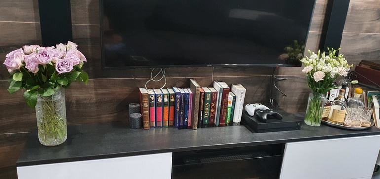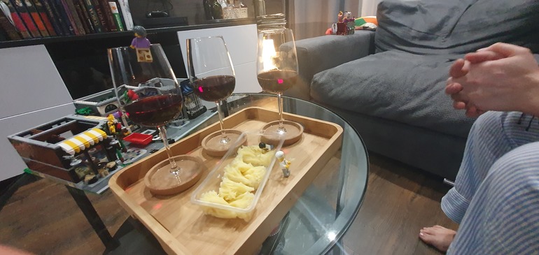 на фото видно кусочек моего любимого маленького бара, где рядом стоит проигрыватель и из динамиков я слышу тоскливый но приятный джаз. И да под бокал испанского сухого я люблю собирать лего. 🥰😁Поделилась с вами кусочком своего мира 🥰