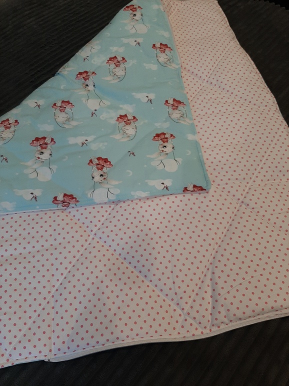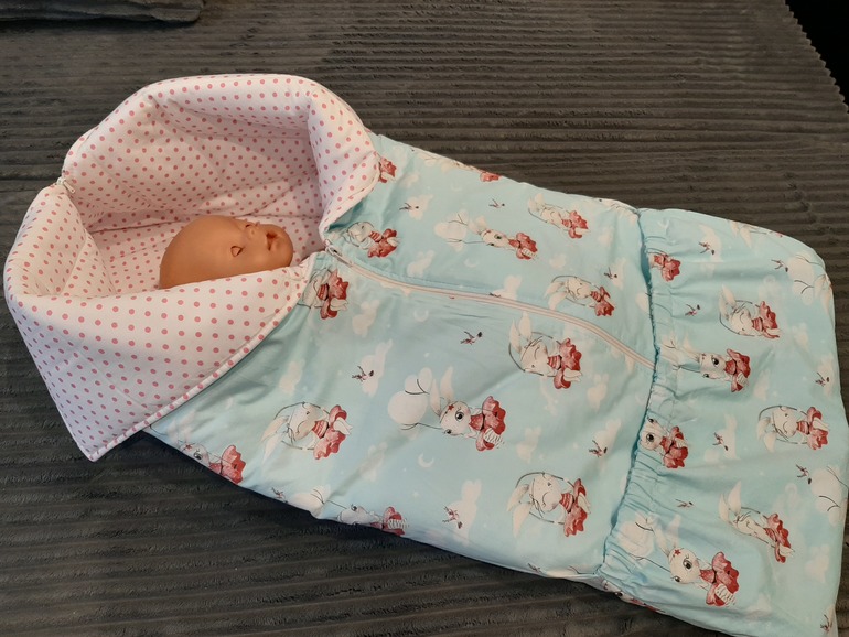 Сшила малышке еще зимний конверт, примерно на 3-6 месяцев, на утеплителе тинсулейт. Должен быть очень теплый. Раскладывается в одеялко.