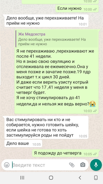 Расчет срока Б, ПДРДевочки ,кто носил мальчишек,разве 41 неделя это перенашивание?Я точно знаю свою овуляцию которая у меня позже и цикл больше,знаю свой пдр который 19 и ставили мне на первых узи,а в 38 недель мне его сдвинул узист почему то на 17.Мес.12.12.2019 я высчитываю пдр 19!Не беря во внимание то что овуляция у меня на 18 день цикла это вобще зачатие если было то 28 декабря так знаю что па был с 27на28 в день овульки.Но суть вот в чем,из переписки поймете.Почему они считают перехаживанием то даже если верить что пдр 17?И готовить шейку это не стимуляция что ли?