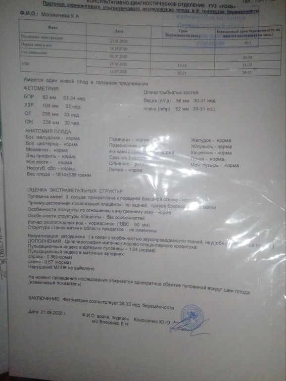 МЫ РОДИЛИСЬ!Девочки подскажите очень переживаю,врач сказала все нормально по в выписке по узи 30недель и 1день размеры головы на на 33-34 остальное на 30-31 неделю,у кого так было,еще и обвитие вокруг шеи,когда делала узи нечего про обвитие не сказала,а в выписке написано фото прикреплю.